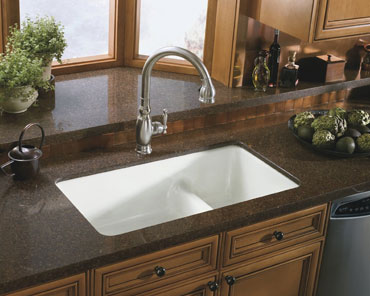 Modern kitchen aren’t just for cooking. Turn them into a beautiful and comfortable space for family meals with customized cabinets, counter tops and backsplashes. Add water saving kitchen faucets and ENERGY STARTMcertified appliances to make it complete.